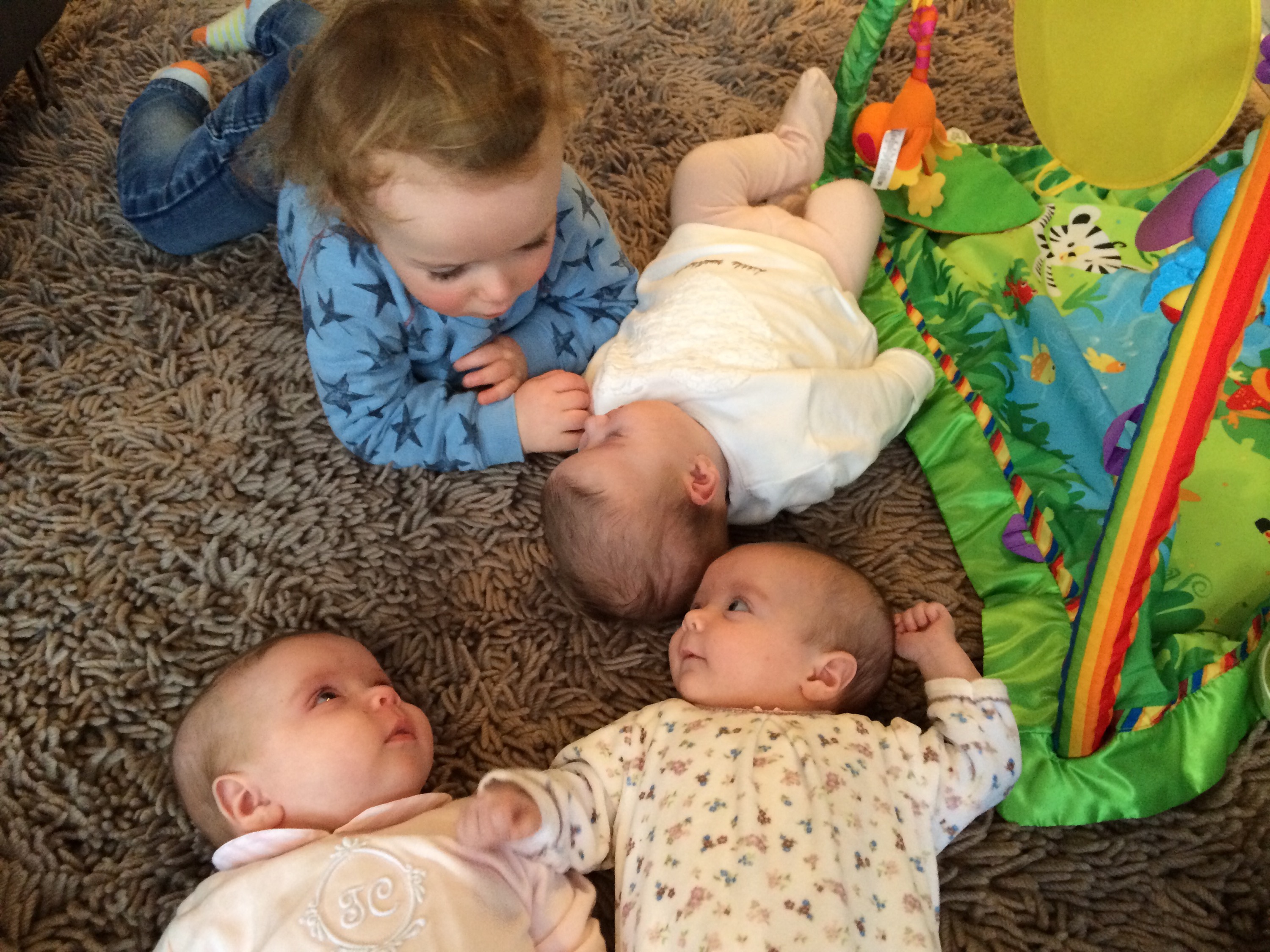 The girls are now 4 months old and my boy is 20 months. Time is flying by and our little unit seems to  be knitting together. Every week it gets better. We are now all starting to have fun together and play includes the girls a lot more. Can S join in? Can she have a car too? Will we all play pizza puzzle together? And although they’re not fully participating yet I can see my son really wanting to play with them and they follow him everywhere he goes with their eyes.